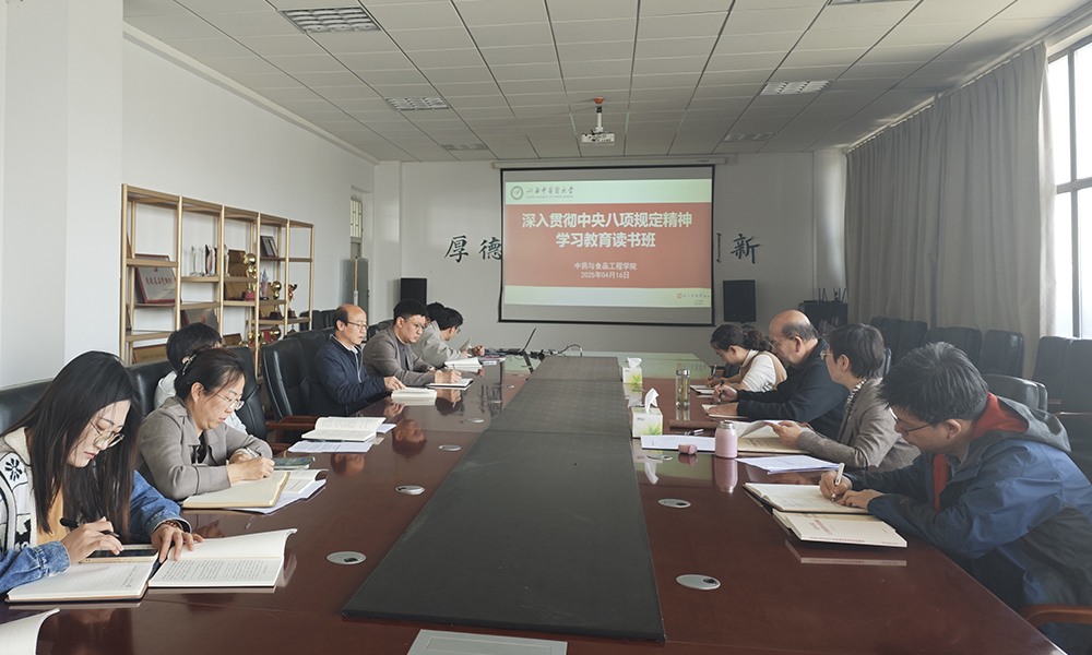 4月16日,中药与食品工程学院党委召开理论学习中心组学习会暨深入贯彻中央八项规定精神学习教育读书班。学院党委书记赵瑞宝主持,全体党委委员、各支部书记参加学习。