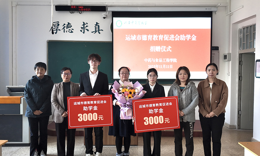 11月11日下午,中药与食品工程学院于和剂书院甲座304举行运城市青少年德育教育促进会助学金捐赠仪式。运城市青少年德育教育促进会会长、学院教师韩雪,学院领导班子、受助学生辅导员、受助学生参加仪式。