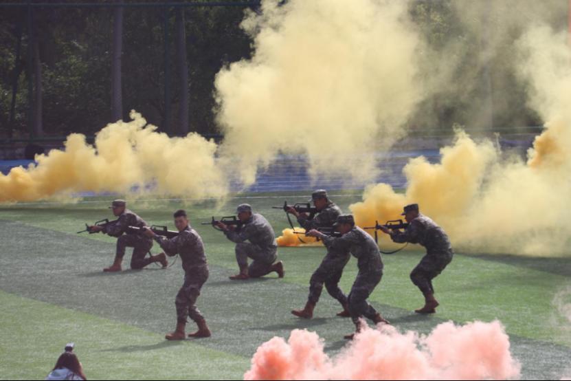 9月19日上午,学院2025级新生军训汇报表演在华佗体育场举行。伴随着庄严的国歌,五星红旗冉冉升起,汇报表演正式开始。在总教官的指令下,新生们身着迷彩服,迈着整齐划一的步伐,喊着嘹亮激昂的口号,以饱满的精神状态走过主席台,展现了14天军训的成果。随后进行的特色科目表演中,刺杀操方阵动作精准有力,擒敌拳方阵气势磅礴。军训期间磨砺的意志将勉励新生将军训中锤炼的品质融入后续学习生活,为专业领域发展蓄力。