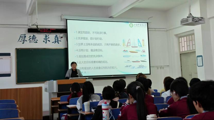 会上,学院领导班子按照分工,分别介绍了学院概况和教育教学情况、学位点与学科概况、学生管理规定及校园文化活动开展情况。学院党委书记赵瑞宝希望全体新生实现“从被动管理到主动负责”的转变,既要深耕专业知识、坚守学术诚信,更要学会做人、做事、与人相处,在学习、科研、校园文化、社会实践中全面发展。