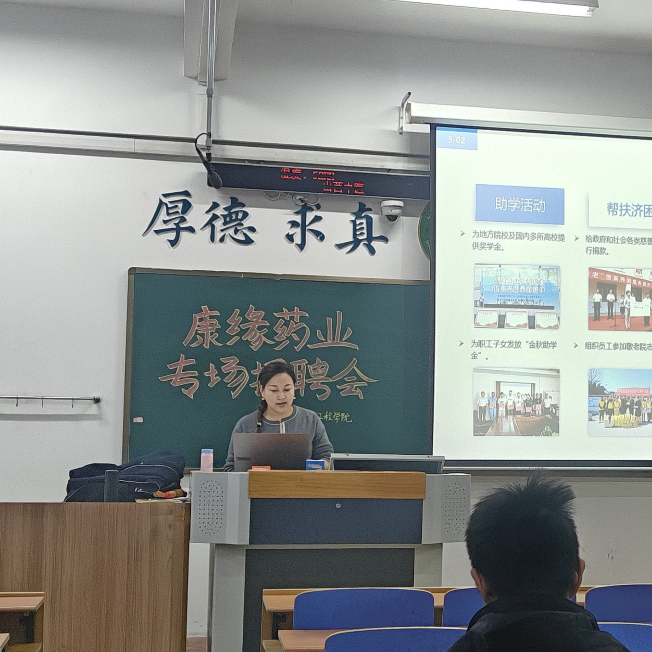 10月18日,康缘药业走进中药与食品工程学院开展宣讲会。作为中药创新领军企业,康缘展示全产业链实力,开放研发、生产、营销等多类岗位,提供住房补贴等优渥福利与清晰晋升通道,助力我院医药学子规划职业成长路,在振兴国药的征程上共赴梦想!