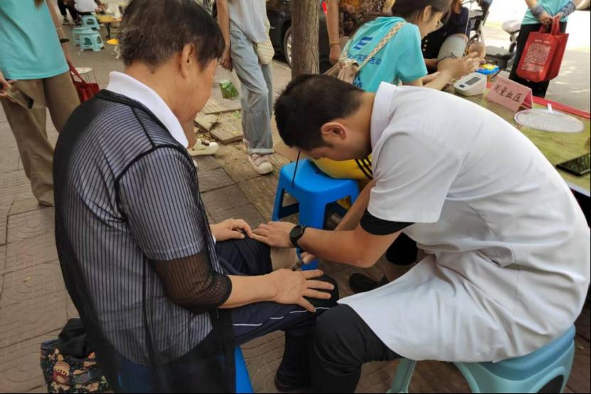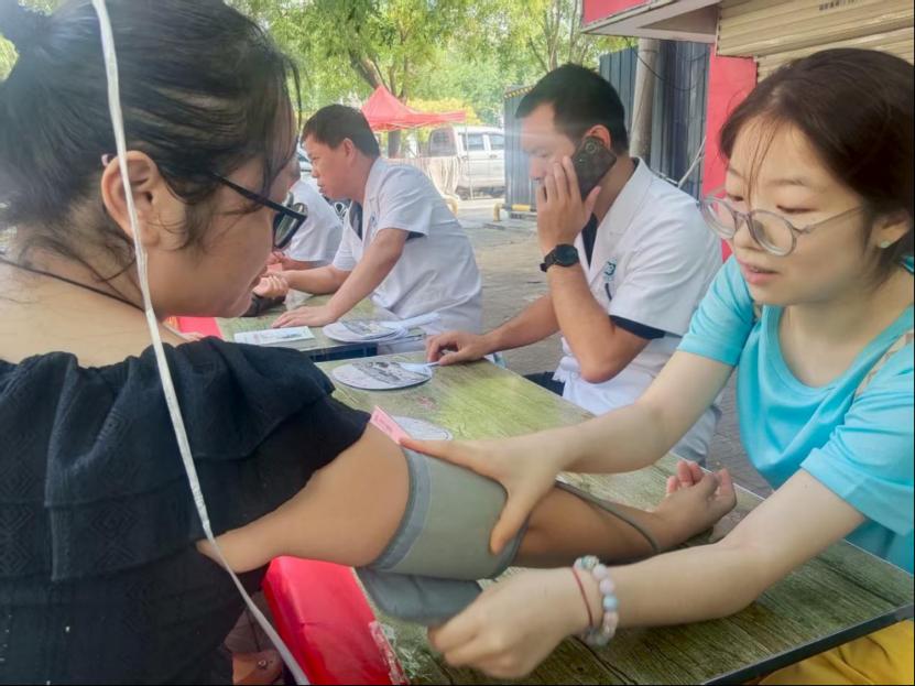 8月21日清晨,团队与河津市中医院医护组成义诊队,前往距离市区11公里的海华南园。义诊持续到中午,团队共服务村民120余人次,发放健康手册200余份。