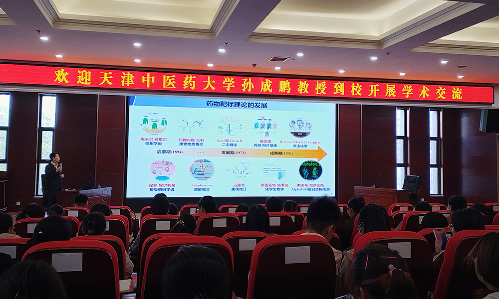 9月24日上午,中药与食品工程学院邀请天津中医药大学博士生导师、天津市杰青、天津市青年科技人才、辽宁省青年拔尖人才孙成鹏教授以“复合式靶标垂钓技术体系构建与中药作用靶标发现”为题进行了学术交流。中药与食品工程学院李会芳教授主持,学院教师、研究生共120余人参会。